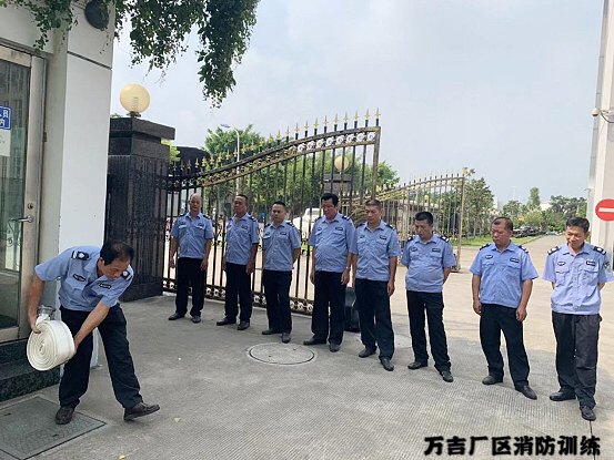 為了強化保安隊伍的消防安全意識,提高對火災撲救工作的組織能力和處理能力,更好的完成廠區(qū)日常與節(jié)假日的消防安全工作,在金秋國慶長假到來之際,公司行政部組織保安隊于2019年9月18日在總部和萬吉廠區(qū)分別進行了二場消防訓練。